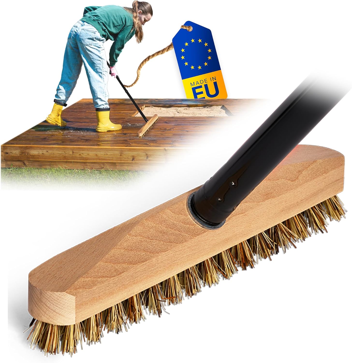 Novaliv Escobilla de madera con cerdas con rosca y mango roscado, 4 piezas, cepillo para fregar PPN, ideal para la limpieza de balcón, terraza, jardín, interior y exterior