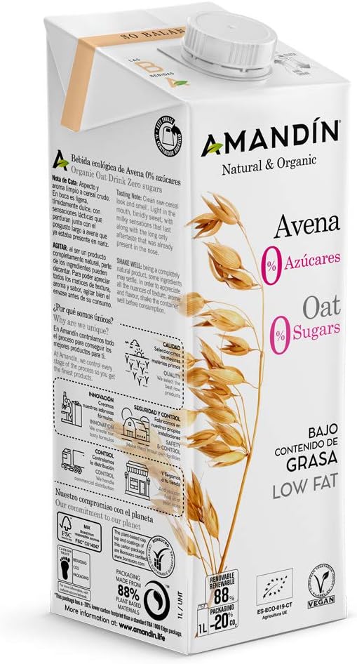 | Nombre del producto | Amandin Bebida De Avena Nature (Sin Aceite) 6 X 1L |