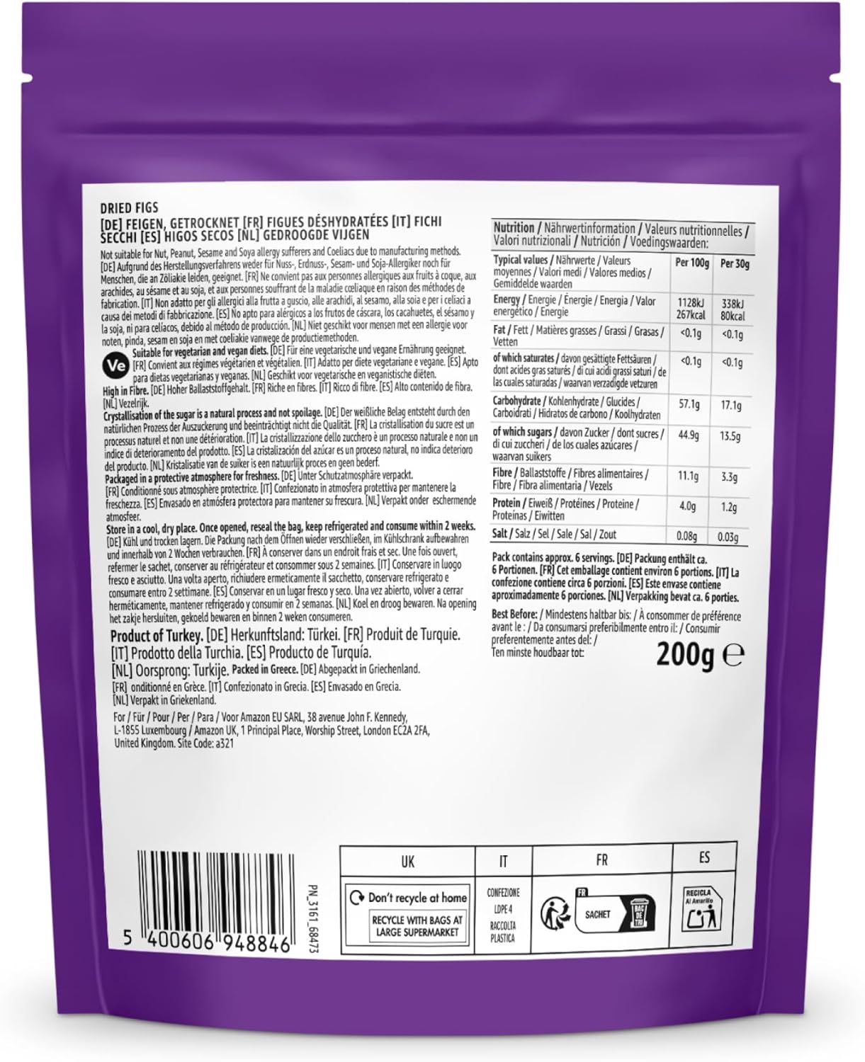 Higos secos. Para los alérgenos, ver ingredientes en MAYÚSCULAS. No apto para alérgicos a los frutos de cáscara, los cacahuetes, el sésamo y la soja, ni para celíacos, debido al método de producción.