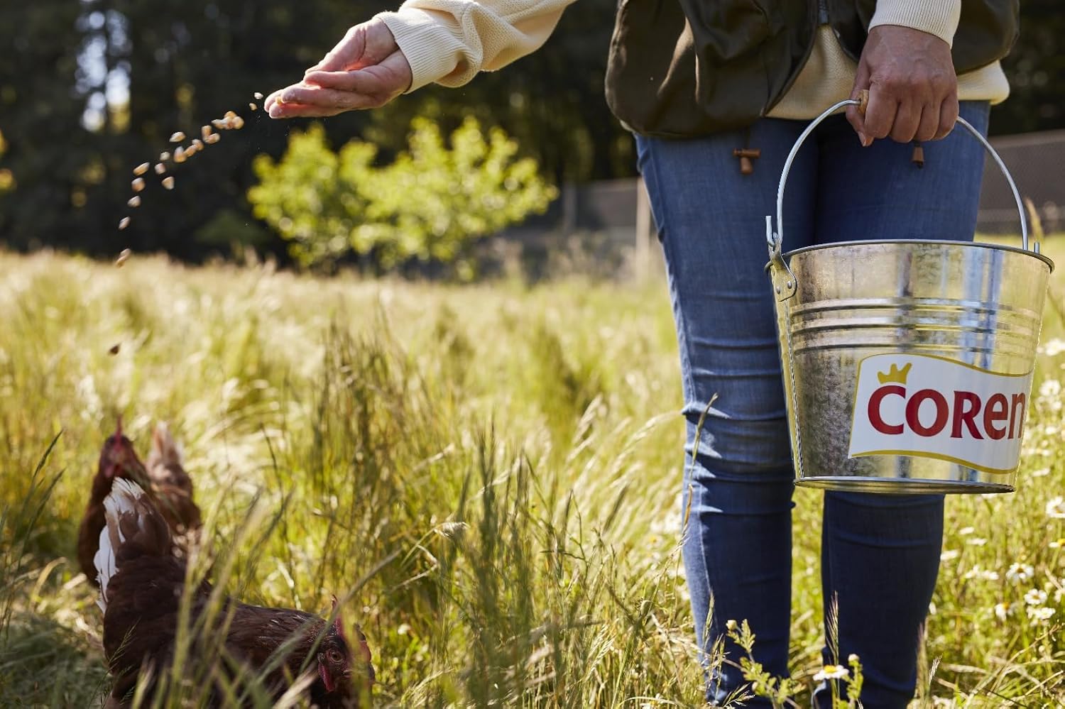 Las gallinas camperas de Coren crecen al aire libre en los campos gallegos, el mejor lugar para la cría de animales en libertad. Allí corren libres por el campo y se alimentan de modo completamente natural, a base de cereales de la máxima calidad, fundamentalmente maíz.