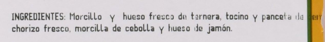 morcillo y hueso fresco de ternera, tocino y panceta de en chorizo fresco, morcilla de cebolla y hueso de jamón. Contenido de la caja