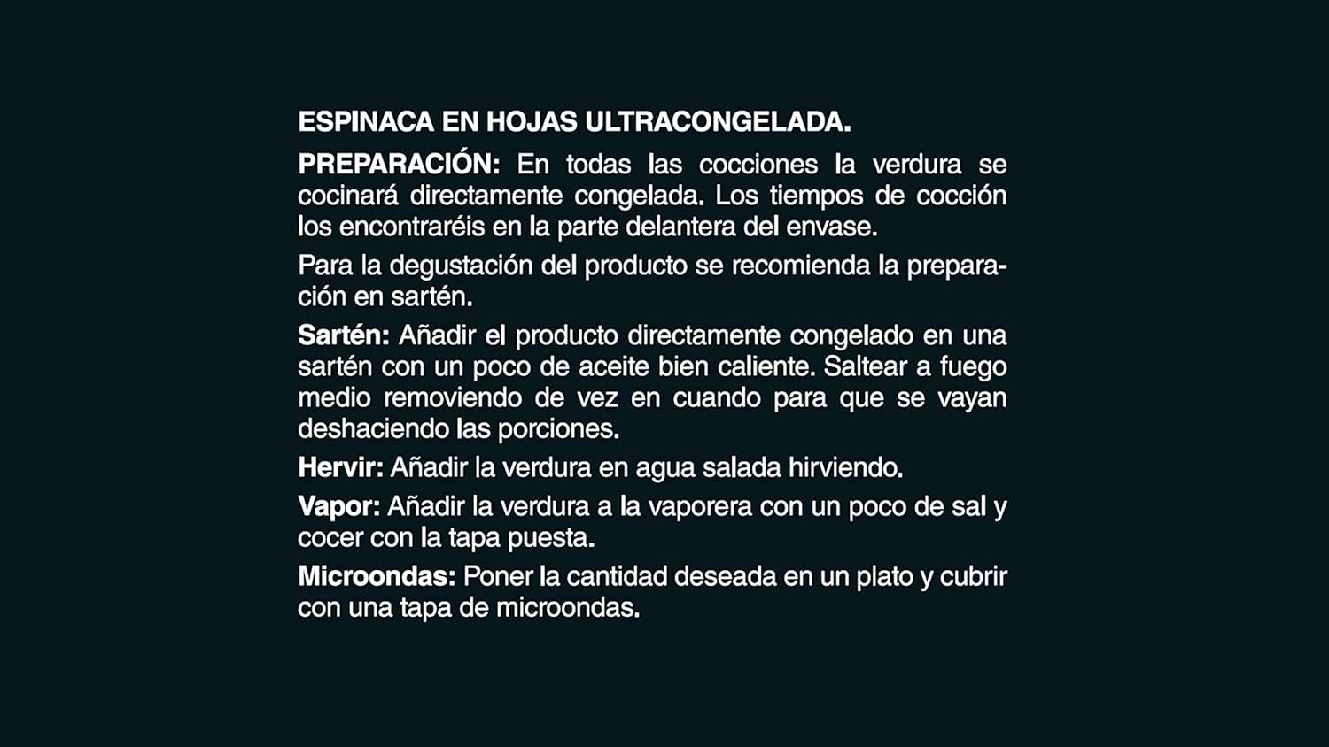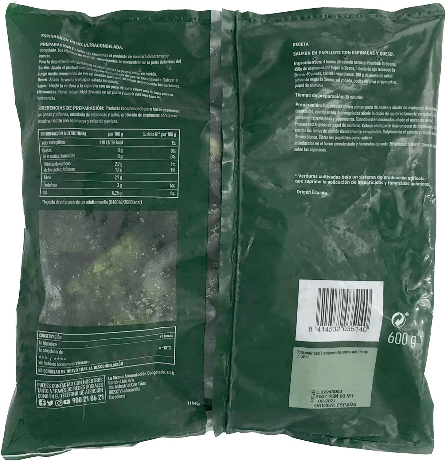 Espinacas Milhojas Premium B. 600G. Ingredientes