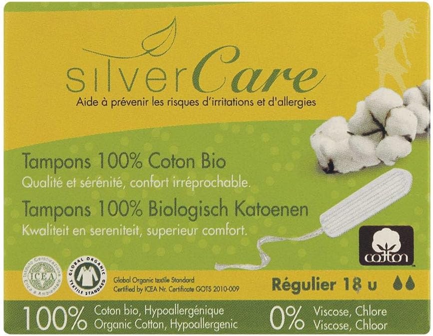 - Los tampones ecológicos de Silvercare están disponibles con o sin un aplicador, y en 3 tamaños: normal, súper y súper-plus. Hechos de algodón 100 % orgánico,el tampón higiénico Silvercare es hipoalergénico para reducir el riesgo de irritación y alergia. El núcleo absorbente está cubierto con un velo protector específico para evitar que las fibras se adhieran al interior del cuerpo durante la extracción. Cordón de retirada.