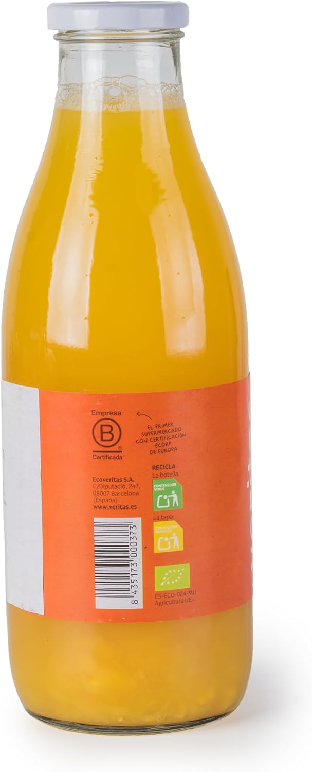 - 🧃 Zumo de naranja Veritas 1 L ECO Ingredientes: Naranjas ecológicas 100%. Beneficios: 50mg de vitamina C por 100ml, refuerzo inmunológico. Certificado: 🌱 Ecológico | 🚫 Sin pasteurizar. 🍳 En la cocina: "Consumir en 3 días tras abrir."