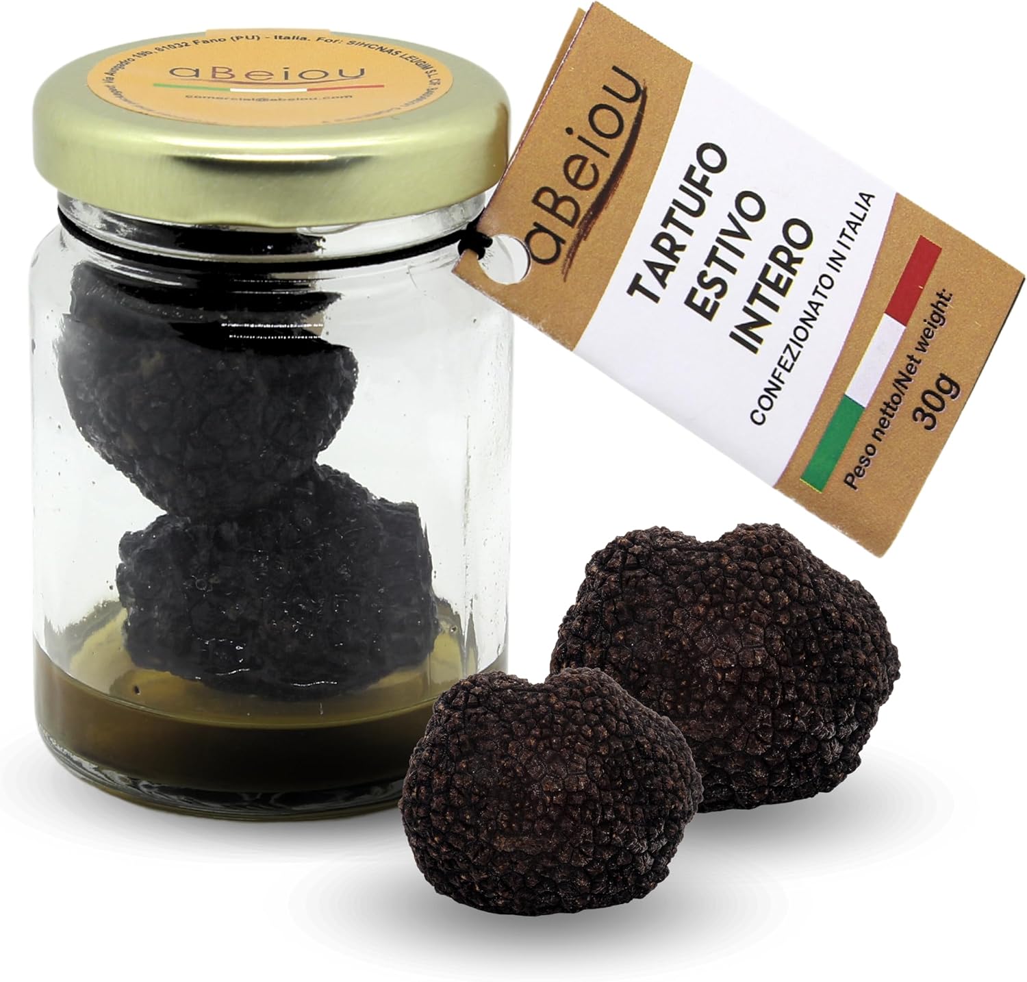 aBeiou Trufas Negras Enteras 30g producto extra gourmet 100% italiano Tuber Aestivum conservado en salmuera para alta cocina vegano vegetariano sin gluten trufa real premium delicatessen